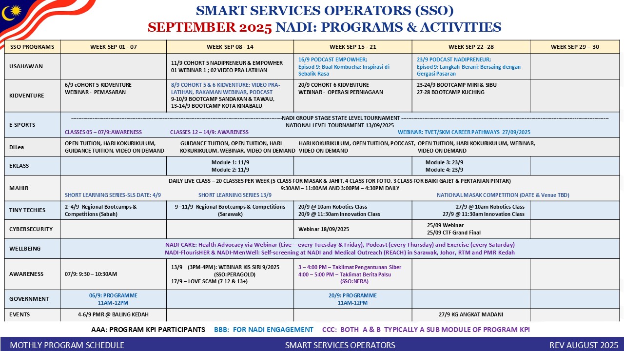 Tarikh : 14 Ogos 2025 Masa : 3.00 petang – 4.30 petang Lokasi : NADI Kg Sentol Patah Peserta : 3 Orang Tujuan Webinar ini menekankan menerangkan cara mengetahui telefon pintar anda boleh menjadi sasaran pengintipan, penipuan dan serangan tanpa […]